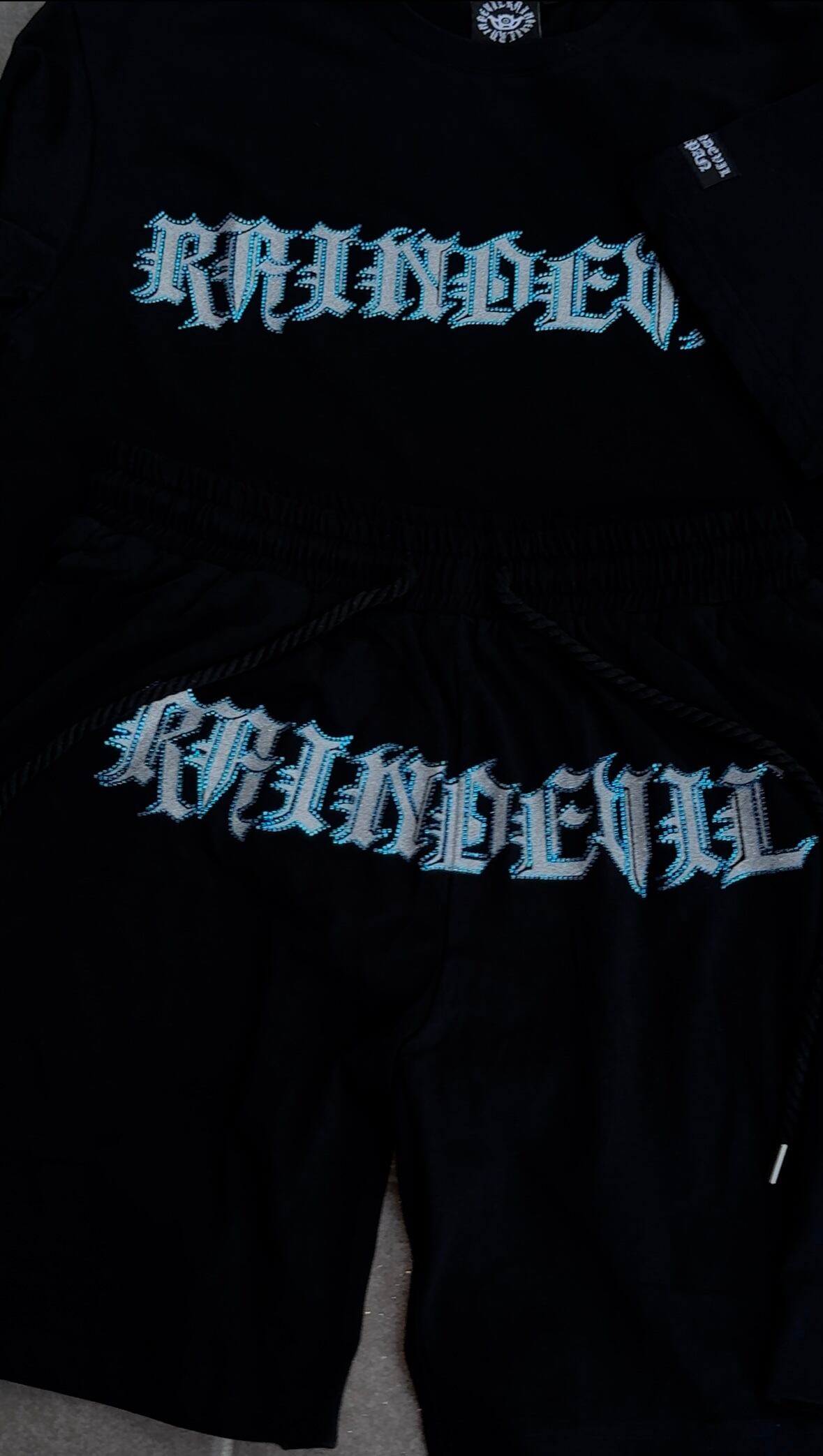 ロゴの部分は rhinestone glitter 加工を施しています。